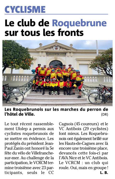 St André de La Roche 23 novembre 2025ASSEMBLÉE GÉNÉRALE ÉLÉCTIVE DU 8.10.2025Médaille du Bénévolat de l'UFOLEP pour Roger GARCIARassemblement Vélo club 31 Aout 2025PHOTO ORIGINALE DU 3.06.2025ARTICLE NICE MATIN DU 3.06.2025Sortie " d'équipe " avec le triathlon de RCM 6 avril 2025Rassemblement à Antibes 2 Mars 2025Rassemblement à Villefranche 23 février 2025CHAMPION REGIONAL EST 12.01.2025Rassemblement VCRCM 1er septembre 2024Les cimes du Mercantour 28 Juillet 2024MEDAILLES DU BENEVOLAT 26 JUIN 2024 UFOLEPLA GUILLAUMOISE 16.06.2024Costa BravaRASSEMBLEMENT A CROS DE CAGNES 14 JANVIER 2024Assemblée Générale Elective 8 novembre 2023Rassemblement Fort de la Revère 15 octobre 2023VCRCM 21VCRCM24Rassemblement Ste Agnès 17.09.2023Fete du Vélo Club et des Sponsors 13.09.2023Les cimes du Mercantour 2 Juillet 2023Cyclo sportive les cimes du MercantourSéjour à Riccione du 4 au 11 Juin 2023Notre féminine Nathalie à la LAZARIDES 29 avril 2023Cyclo- sportive Louis CAPUT à Cannes 23 avril 2023Rassemblement au Rouret 16 avril 2023 Au départ du tour de l’Estérel 23 mars 2023Rassemblement à Hauts de Cagnes le 12 février 2023Remise des trophées UFOLEP 2022Rassemblement VCRCM Du 18 Septembre 2022En souvenir d'une sortie avec Davide REBELLIN le 27/07/2021sortie club à Peymeinade le 22 octobre 2022